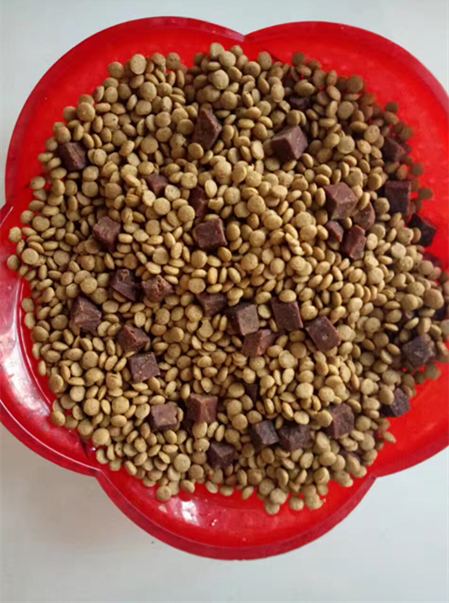 客戶反饋的自制狗糧顆粒(金諾狗糧機與您共成長):